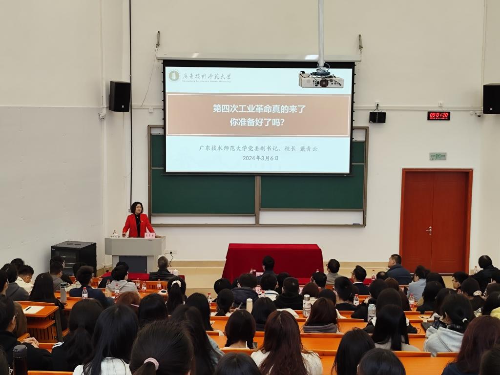戴青云以《第四次工业革命真的来了,你准备好了吗?》为题,结合自身经历,就人工智能时代背景下青年学生如何成长、成人、成才与广大青年做了交流分享。她围绕应对世界产业革命新变局、助力中国式现代化新格局,引导广大青年坚持“四个面向”,树立正确的世界观、人生观、价值观,为发展新质生产力蓄势赋能。