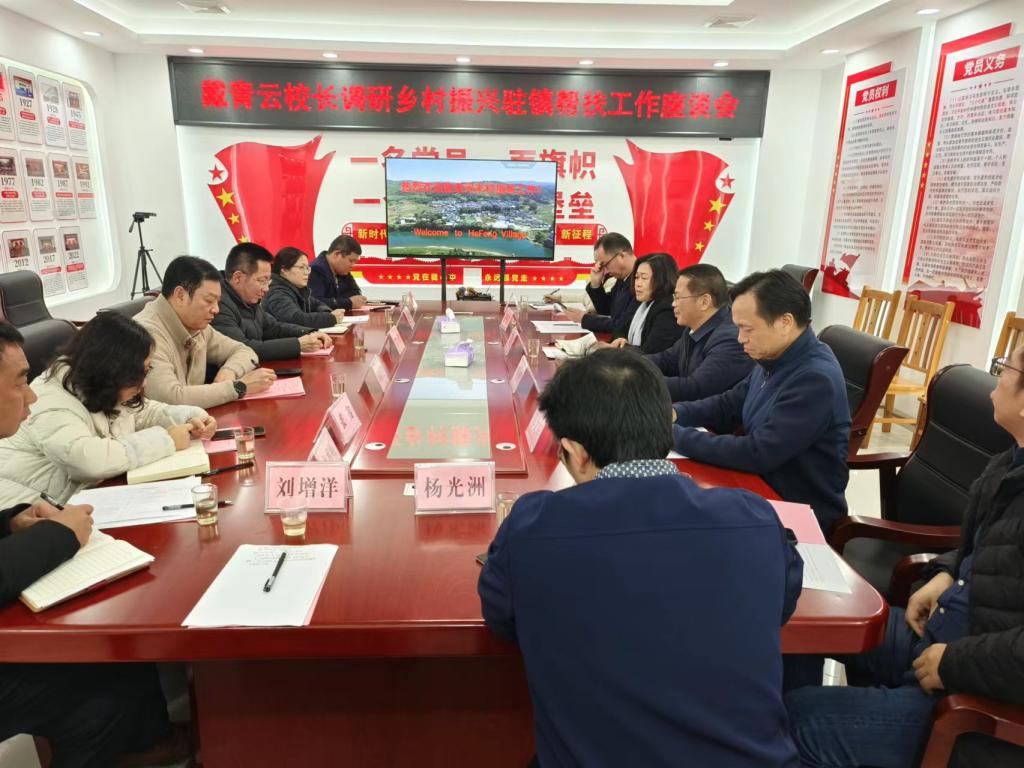 戴青云一行深入到坪石镇河丰村调研屋顶光伏产业项目以及新建成的党建会议室,实地体验河丰村入选全省“百千万工程”典型村后的变化,并现场召开工作座谈会。座谈会上,学校驻镇帮扶工作队汇报了近期工作成果及下一阶段工作计划,河丰村支部书记和坪石镇党委书记分别介绍了河丰村作为全省典型村的培育工作和坪石镇推进“百千万工程”的情况。邹有胜代表乐昌市委市政府对学校领导一行的到来表示热烈欢迎,对学校一直以来对坪石镇乡村振兴工作的大力支持表示诚挚感谢,并介绍了乐昌市面临的发展机遇及下一步乡村振兴工作规划。