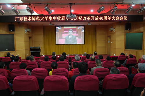 美术学院组织师生党员、发展对象、入党积极分子,光电工程学院组织师生党员和团学干部分别在福慧美术馆、校本部第一教学楼201课室集中观看了庆祝改革开放40周年大会。