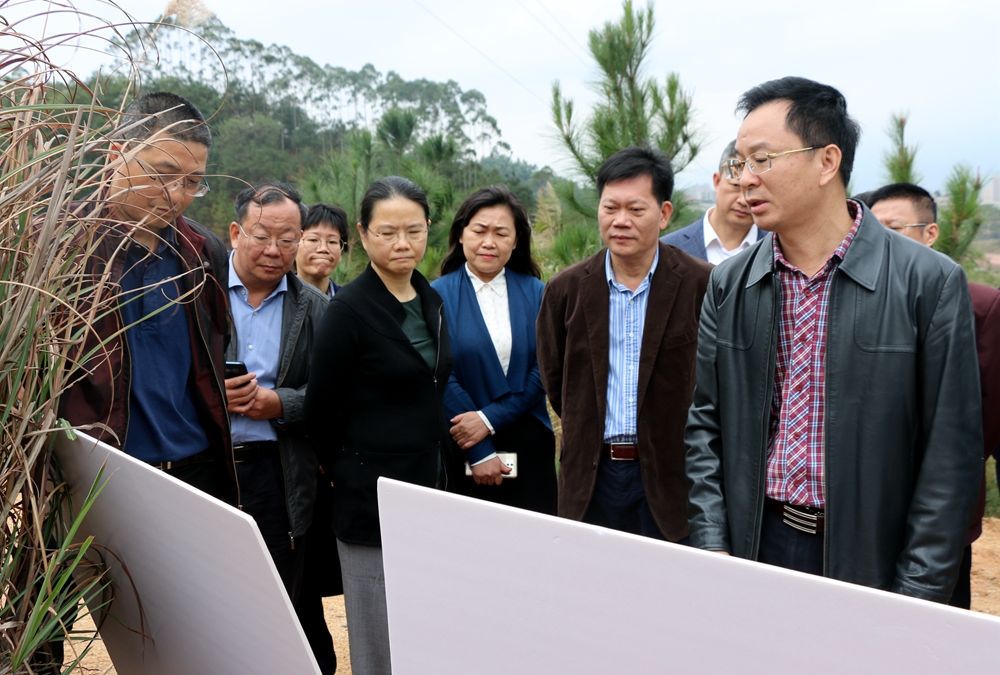 座谈会前,凌靖波、骆少明一行在叶梅芬、庞启彪及河源市有关部门负责同志的陪同下察看了河源校区新选址现场。