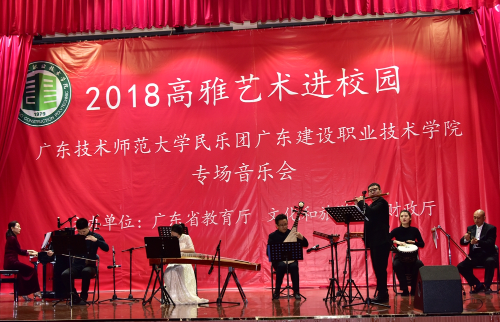 经过省教育厅专家组的严格、认真遴选,共有14家高校中具备“高雅艺术进校园”演出资质单位,我校是其中之一。全省“高雅艺术进校园”演出63场,我校承担5场。为了完成省教育厅下达的演出任务,学校领导高度重视,校团委与音乐学院教师民乐团认真策划、组织创作、积极排练,以“中国梦正飞扬”为主题,以中外经典名曲为主要内容的民乐专场音乐会呈现,以民乐合奏、协奏、独奏、独唱等多种形式表达,做到既能深度引领,又能“雅俗共赏”。民乐专场音乐会有《战马奔腾》《梁祝》《之子于归》《九儿》《瑶族舞曲》《查尔达什舞曲》等十多个节目,每一首曲目都经过创作团队的精心编配和巧妙安排,使音乐会别开生面。我校演出所到的东莞市寮步镇香市小学、东莞市石龙第三中学、广东建设职业技术学院、广东技术师范大学天河学院、清远职业技术学院,其演出满意度被评为“优秀”等次,观众场场爆满,据不完全统计,参加音乐会人数近8000人;每个节目的精彩演绎,师生都报以热烈的掌声,充分展示了高雅艺术的魅力。演出单位的师生们表示,高雅艺术进校园打破高雅艺术的距离感,让学生与艺术零接触,真正实现了高雅艺术从“曲高和寡”到“高朋满座”的华丽转身。(音乐学院 黄运召)