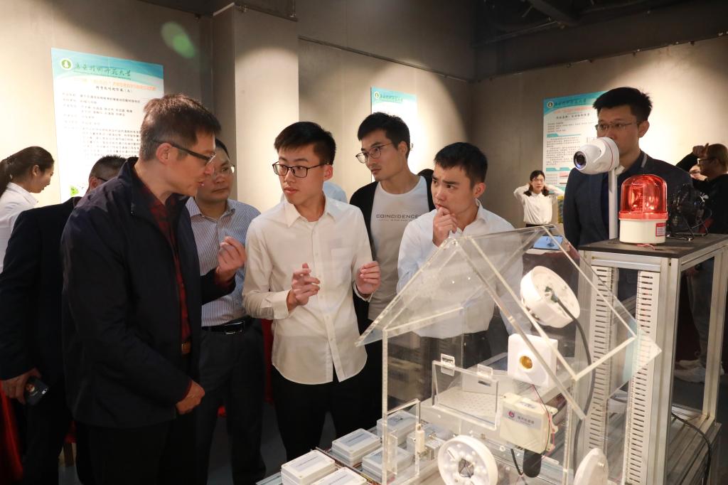 正式比赛前,贺勇看望参赛师生并与之亲切交流,认真听取各项目成员对作品的介绍,详细了解项目进展情况,并针对参赛作品提出了宝贵的意见与建议,鼓励同学们在竞赛中取得好成绩。在现场,贺勇还与校外评审专家进行深入交流,向各位专家对我校学术科技竞赛的大力支持和帮助表示衷心的感谢,并就大学生学术科技类比赛和大学生创新能力提升交换了意见。
