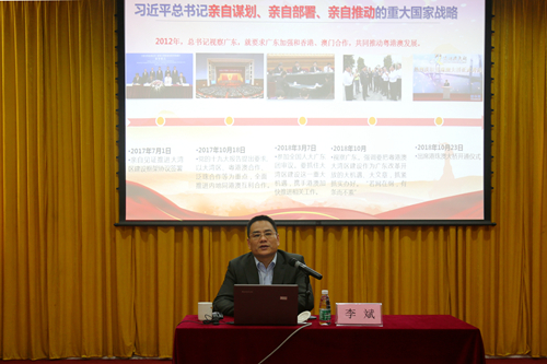 3月20日下午,《粤港澳大湾区发展规划纲要》宣讲报告会暨中心组学习扩大会在校本部208学术报告厅举行,学校邀请省委宣讲团成员、省委宣传部讲师团团长李斌同志到校作宣讲报告。学校党政领导,全体中层干部,各民主党派负责人,马克思主义学院教师和学生代表参加报告会。报告会由副校长潘自勉主持。