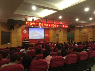 3月15日下午,广东省2019年招考公务员宣讲推介会在校本部一教讲学厅举行。广东省委组织部公务员二处陈勇副处长、汪衍礼科长携汕尾、湛江、清远等地市组织部门工作人员来我校宣讲2019年广东省公务员报考政策等,吸引260多名毕业生到场聆听。