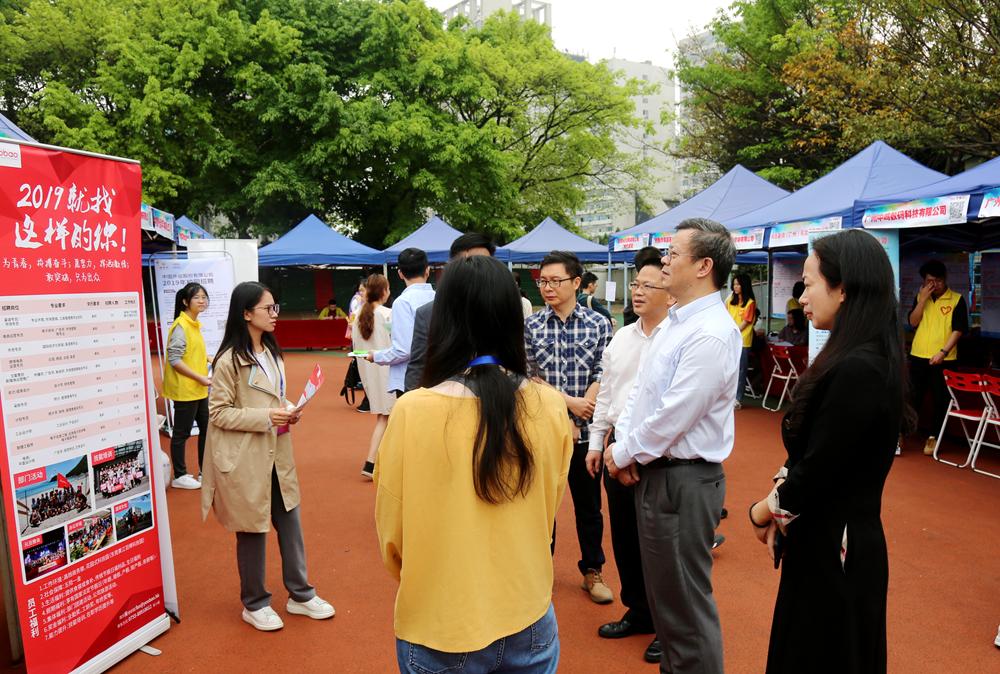 3月29日,由广州市人力资源和社会保障局、中国南方人才市场管理委员会办公室和我校联合举办的“2019年上半年广州市‘阳光就业’高校毕业生系列招聘会广东技术师范大学专场”在校本部举行,校长骆少明、校党委副书记贺勇与广州市高校毕业生就业指导中心副主任彭罡等先后到招聘会现场指导工作。