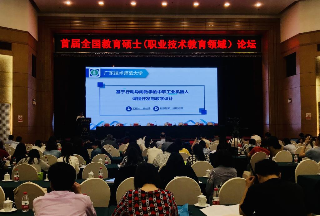 论坛共收录在读教育硕士专业学位研究生学术论文75篇。其中,我校机电学院加工制造专业职教教育硕士袁桂琦同学提交的学术论文《基于行动导向教学的中职工业机器人课程开发与教学设计》(指导老师:姚屏教授)被评为优秀论文在分论坛上发言。经过分论坛专家现场专业评议,该论文还最终入选为6篇典型学术论文之一在闭幕式上报告推广。论文选题及报告内容受到教指委专家多次点名表扬和推崇。