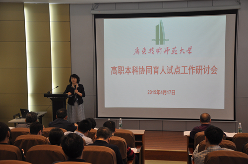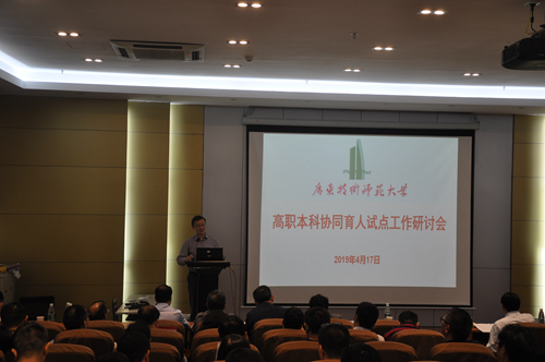 为深入推进高职院校与我校一体化协同培养适应经济社会发展需要的应用型和职教师资人才,4月17日下午,学校召开高职本科协同育人试点工作研讨会。广东省教育厅高教处处长郑文,学校校长骆少明、副校长许玲出席会议并作讲话。与我校联合开展试点工作的14所高职校领导、教务处负责人、院系负责人、专业负责人以及我校教务处负责人、试点学院院长、分管教学副院长、专业负责人等100余人参加了会议。