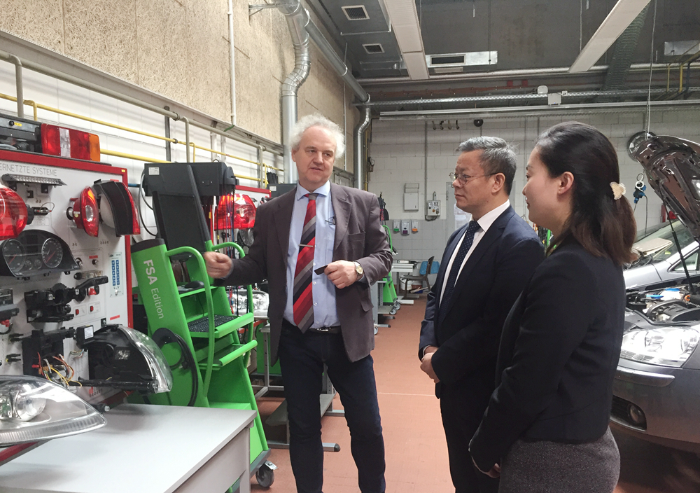 在德国HWTK应用技术大学,校长Lars-Christian Klinnert等热情接待了访问团一行,双方就我校部分专业学生到该校“双元制”交流学习的有关问题进行了深入探讨,双方将继续保持联系推进合作。