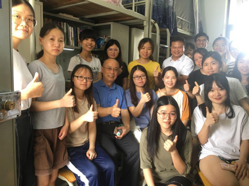 潘自勉每到一间宿舍,都受到学生们的热烈欢迎。“宿舍会安装空调吗?”“我们复习考研的教室会安排吗?”“我们的校园卡需要重新换吗?”潘自勉嘘寒问暖,深入了解同学们的学习生活情况。在2016级工商管理、行政管理、公共管理、劳动与社会保障等专业温馨整洁的学生宿舍里,大家围坐一起,热烈交流,同学们分别就校区搬迁、考试安排、住宿环境等问题进行咨询。潘自勉笑意盈盈,耐心一一予以解答。