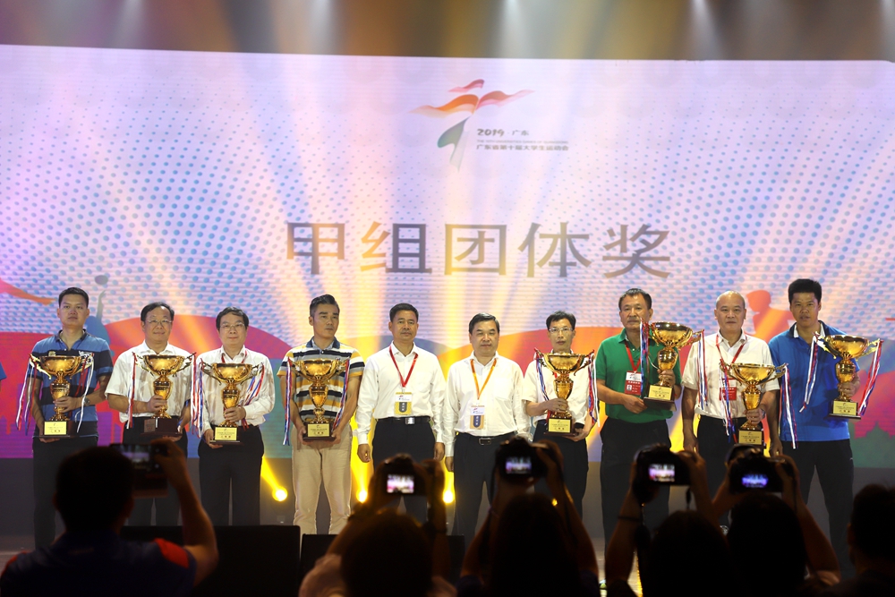 5月6日至5月31日,由省教育厅、省体育局联合主办历时26天的广东省第十届大学生运动会各项比赛在省内13所承办高校举行。此次大学生运动会共有全省133所高校、1025支代表队、11600余名运动员参赛,我校派出由105人组成的体育代表团,其中运动员88名,分别参加定向越野、女篮、男排、羽毛球、乒乓球、健美操、田径等7个项目的激烈角逐,最终荣获甲组三等奖和体育道德风尚奖。我校代表团团长、学校体育运动委员会主任、副校长冯灿仪出席了5月11日和31日在广东外语外贸大学举行的开、闭幕式和颁奖仪式。
