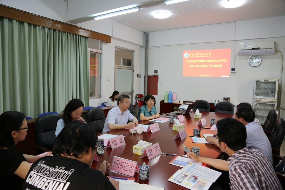 6月12日上午,甘孜藏族自治州职业技术学校党委书记、校长吴大成一行来我校调研交流。校长骆少明、副校长许玲出席座谈会,学生处、教务处等部门负责人参加了会议。座谈会由许玲主持。