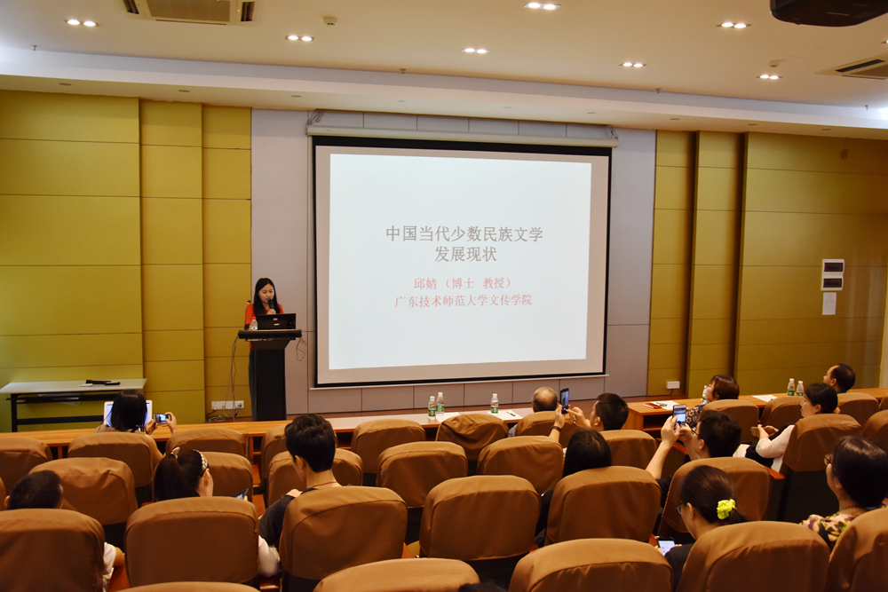 6月19日,由广东省教育厅和广东技术师范大学联合主办,人事处与文学与传媒学院共同承办的2019年第十六期广东省珠江学者讲坛在我校本部一教209室举行。我校文学与传媒学院邱婧教授以“中国当代少数民族文学发展现状”为题向到场师生作了专题报告,来自省内多所院校100余名师生参加了本次讲坛。讲坛由人事处负责人主持。