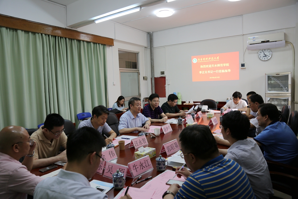 6月19日下午,天水师范学院党委书记李正元一行6人来我校交流。学校校长骆少明出席座谈会,发展规划处、教务处、马克思主义学院等部门负责人参加座谈会。座谈会由骆少明主持。