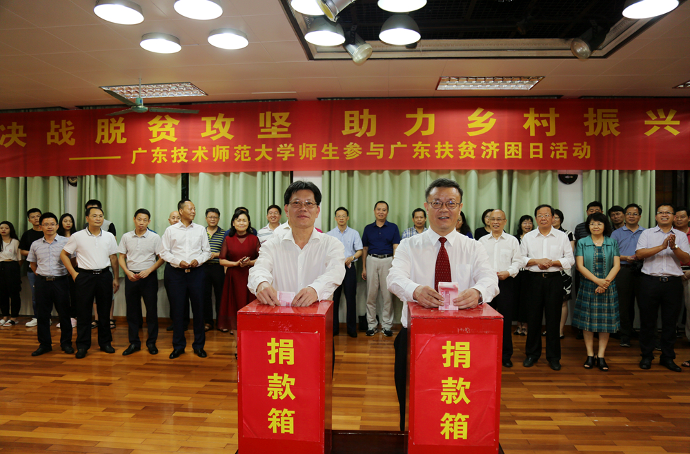 在广东省扶贫济困日即将到来之际,为响应省委、省政府号召,在我校师生中积极开展扶贫济困工作,6月24日下午,学校在工会教工娱乐室举行了主题为“决战脱贫攻坚,助力乡村振兴”的爱心捐赠活动启动仪式。全体校领导,各二级党委、党总支、直属党支部负责人,部分职能部门负责人和学生代表参加了仪式。