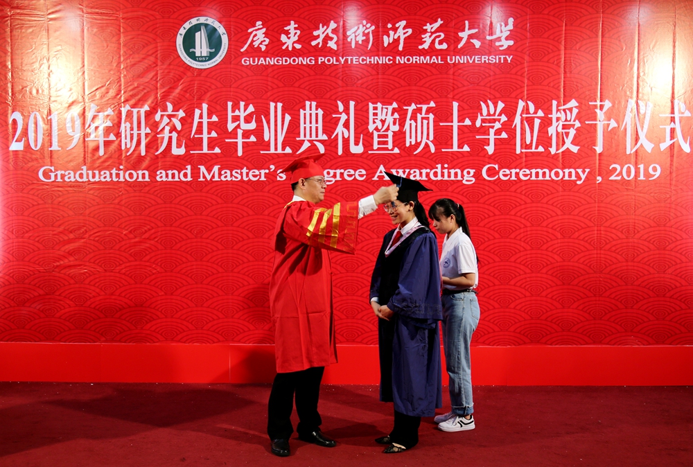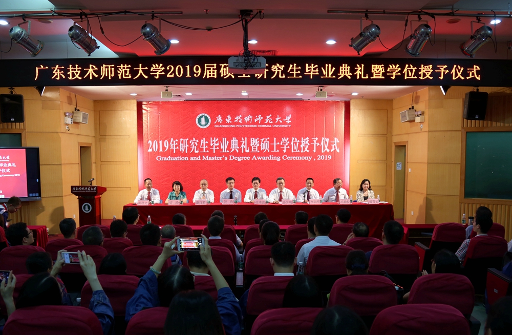 6月25日、27日7时50多分,广东技术师范大学2019年毕业典礼暨学位授予仪式现场热闹非凡,气氛热烈,在场师生身着盛装,脸上洋溢着幸福的笑容。