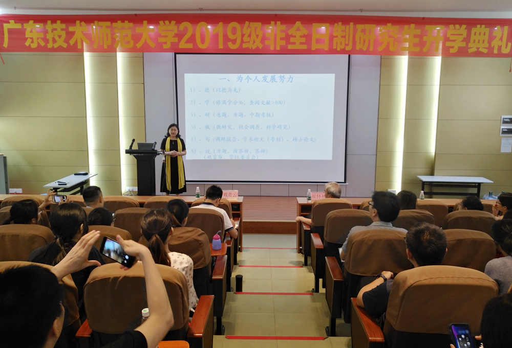 戴青云在致辞中向顺利考取我校非全日制硕士研究生表示衷心祝贺和热烈欢迎。戴青云介绍了我校的基本情况和研究生培养概况;寄语2019级非全日制研究生处理好家庭、工作和导师之间的关系。戴青云希望研究生新同学在未来的学习生活中,要以德为先,提高思想品德水平;重视学习和尊重学术规范;提高职业素养;学会从书本、自然和社会中发现问题、分析问题、解决问题。