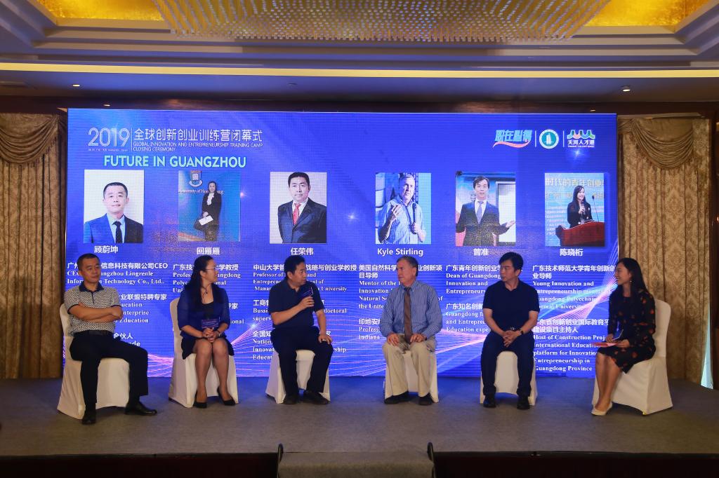 闭幕式上还举行了广州国际创新创业高峰对话。中山大学教授、全国知名创新创业教育专家任荣伟、印第安纳大学教授Kyle Stirling、中国教育创新校企联盟特聘专家顾蔚坤、广东青年创新创业学院院长曾准和我校国际教育学院院长回雁雁等专家学者纷纷发言,探讨在粤港澳大湾区的背景下,创新创业工作如何为区域经济服务以及双创人才培养国际化的理念与经验。