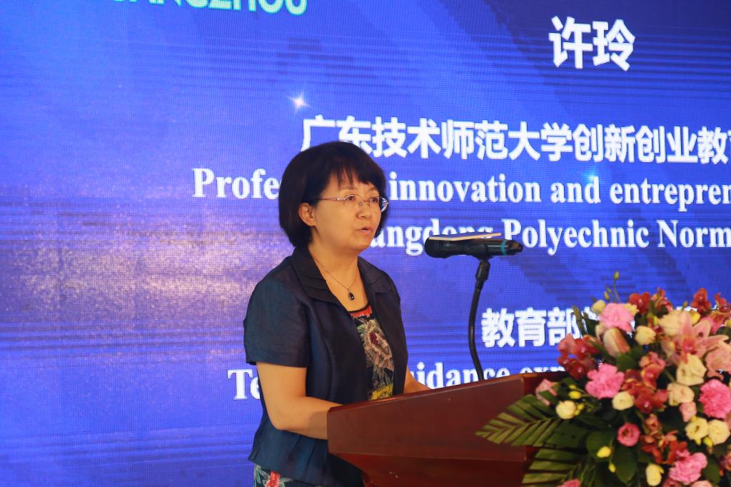 许玲在闭幕式致辞。广东技术师范大学一直高度重视创新创业教育,立足国家创新驱动发展战略,面向国际,面向粤港澳大湾区,将双创教育融入人才培养全过程,致力于推动广州的国际青年培养服务体系和创新创业交流平台的建设工作,服务区域经济发展。