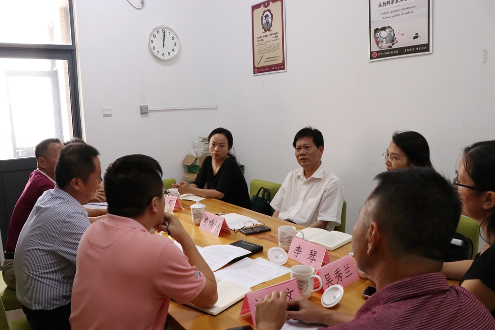 随后,凌靖波来到法学与知识产权学院进行调研,与法学与知识产权学院领导班子进行座谈。座谈会上,法学与知识产权学院党总支书记许建鑫汇报了学院领导班子建设、师资队伍建设、学科建设、人才培养、教学科研、社会服务、党建思政等方面工作情况及存在的困难,并提出了下一步工作计划。法学与知识产权学院党总支副书记李雪斌汇报了学生工作部署情况和新学期加强学风、班风、舍风建设及政工干部队伍建设等方面的工作思路。法学与知识产权学院副院长郭洪波汇报了学院科研团队、课题申报等方面情况。教务处等相关职能部门负责人就加强专业建设规划等方面问题给予了回应。