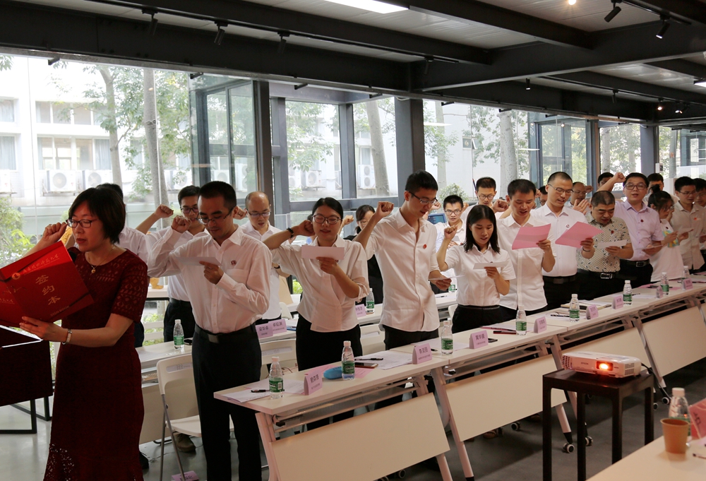 党委教师工作部部长、人事处处长许竹君带领全体新教师进行入职宣誓,现场全体教师起立,举起右手面向国旗庄严宣誓。宣誓结束后,全体新教师签署《师德承诺书》。