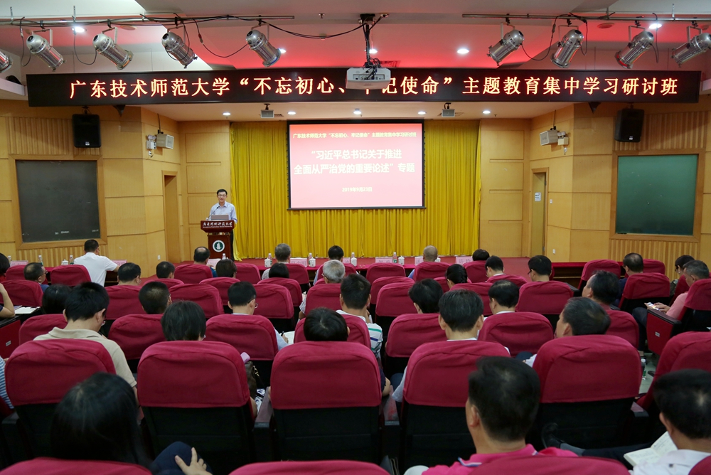 9月23日,广东技术师范大学“不忘初心、牢记使命”主题教育集中学习研讨班成员专题学习研讨“习近平总书记关于教育的重要论述”。学校领导、省管干部、全体中层领导干部180多人参加了学习。