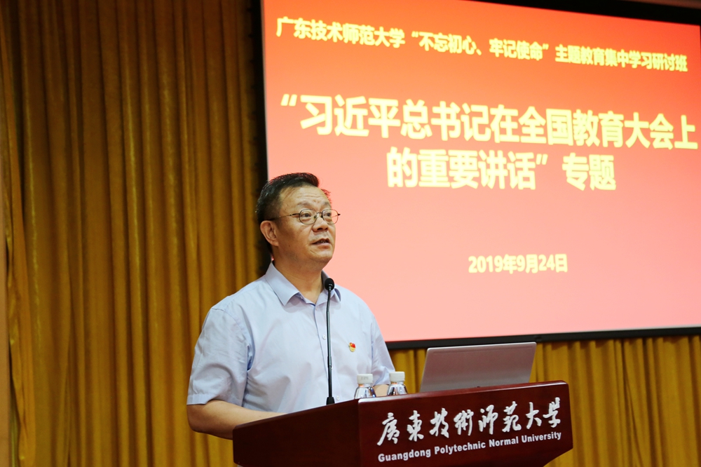 9月24日下午,我校举办的“不忘初心、牢记使命”主题教育集中学习研讨班圆满结束。学校领导、省管干部、全体中层领导干部180多人参加了仪式。学校党委副书记李向明主持仪式。