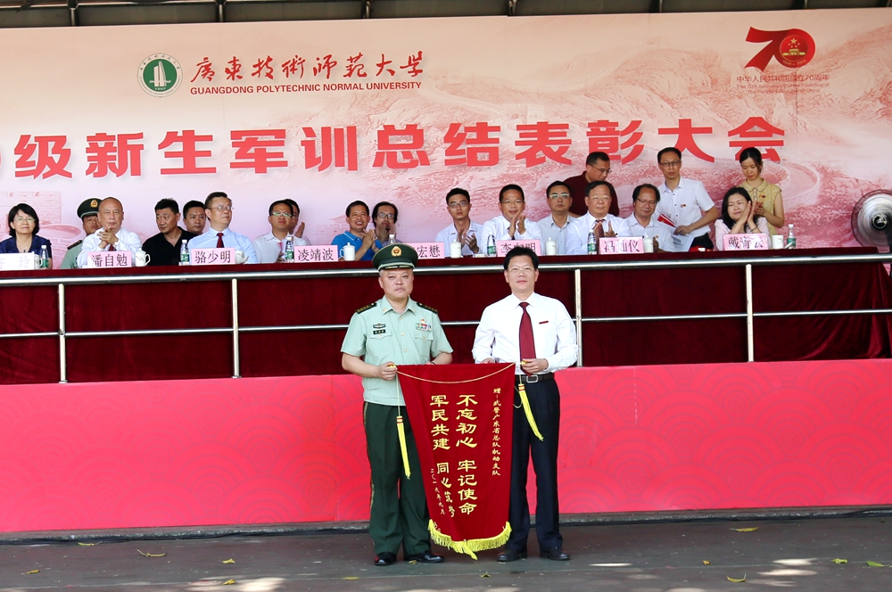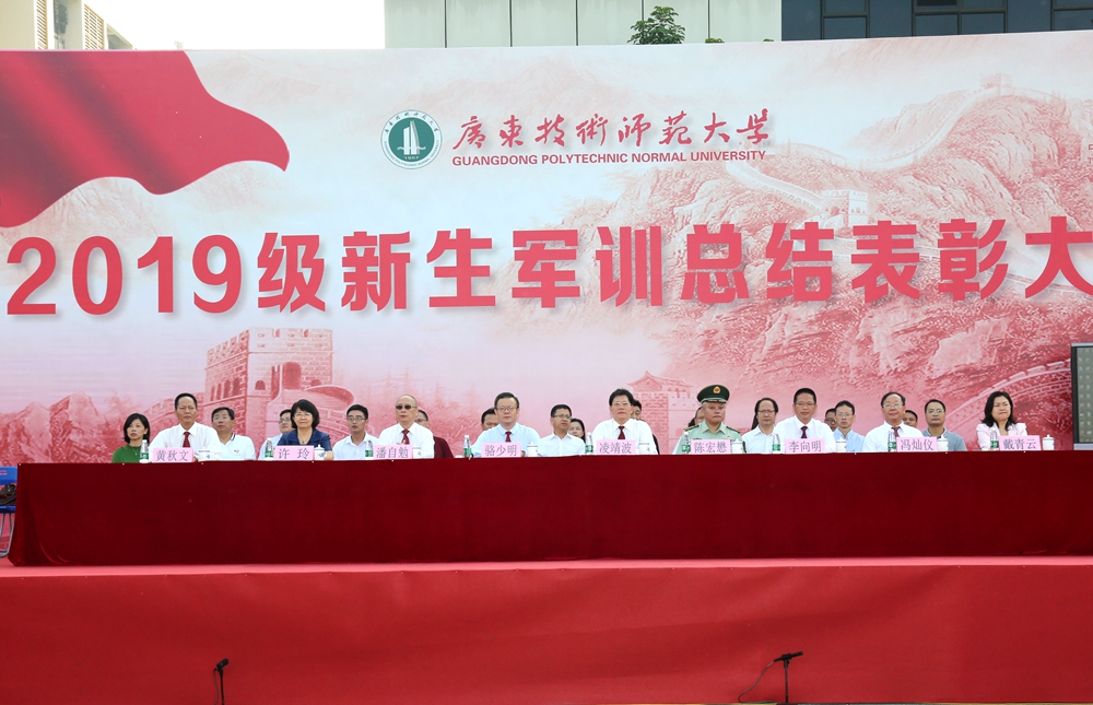 9月30日上午,我校2019级新生军训总结表彰大会在分别在白云校区、东校区田径运动场举行,同学们青春洋溢,热情高涨,英姿勃发,为本次军训交上了一份满意的答卷。出席本次大会的领导和嘉宾有:学校党委书记凌靖波,学校校长骆少明,学校党委副书记李向明,学校副校长潘自勉、冯灿仪、许玲、戴青云、黄秋文,武警广东省总队机动支队政委陈宏懋大校,军训工作领导小组成员。大会由学生工作部(处)处长郭磊主持。