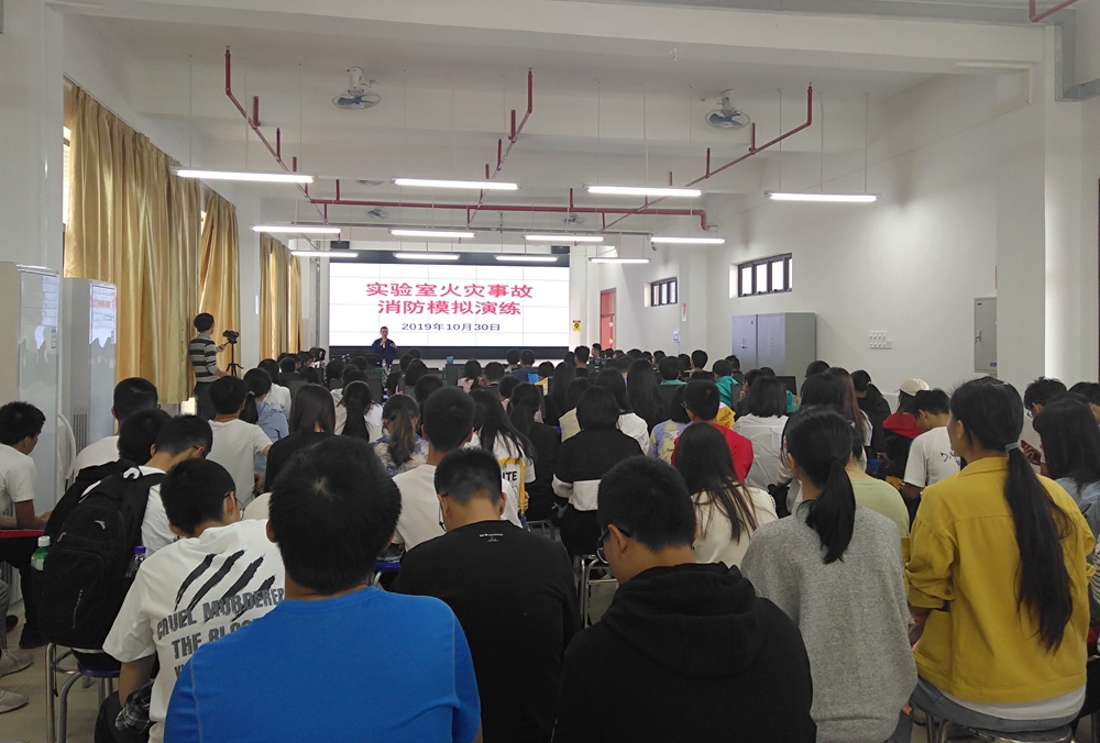 为强化师生安全意识,提高师生在发生火灾时的应急逃生技巧及处置能力。10月30日下午,学校在白云校区开展实验室火灾事故专项模拟演练活动。白云区消防大队人和中队两位专业消防员同志,资产与实验室管理处、保卫处相关人员及白云校区9个学院实验室管理教师及学生代表120多人参加此次活动。