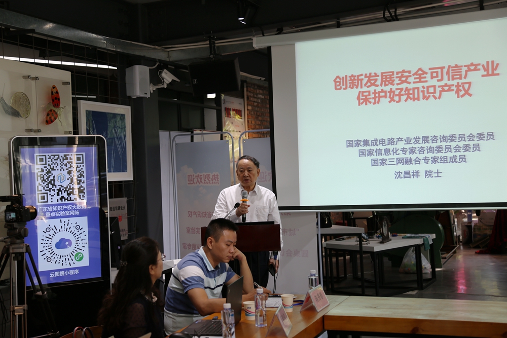 我校特聘院士、广东省知识产权大数据重点实验室学术委员会主任沈昌祥院士,省政协科教卫体委员会主任、粤港澳大湾区知识产权调研组组长郭俊,中国专利技术开发公司副总经理彭茂祥,北京大学法学院教授、互联网法律中心主任张平,广州市市场监管局(知识产权局)一级调研员陈兴益,中山大学图书馆研究馆员、广东省科技情报学会副理事长罗春荣,我校副校长、广东省知识产权大数据重点实验室主任戴青云等先后作主题发言。