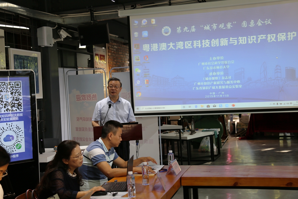 11月11日上午,由广州市社会科学界联合会、广东技术师范大学联合主办,《城市观察》杂志社、广州市知识产权研究与服务中心、广东省知识产权大数据重点实验室联合承办的第九届“城市观察”圆桌会议在广东技术师范大学东校区大师工坊内举行。会议主题为“粤港澳大湾区科技创新与知识产权保护”,来自省内外高校、科研机构和企业,广州市人文社科重点研究基地的专家学者等100余人参加了本次研讨会。会议由广州市社科联副主席郭德焱主持。