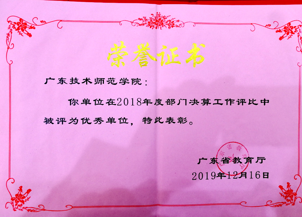 日前,广东省教育厅通过综合质量评审,总结通报了省属学校2018年决算工作情况,并对优秀单位进行表扬。我校获评2018年度部门决算工作优秀单位,并获省教育厅通报表彰。这是2016年以来,我校连续三次获此荣誉。