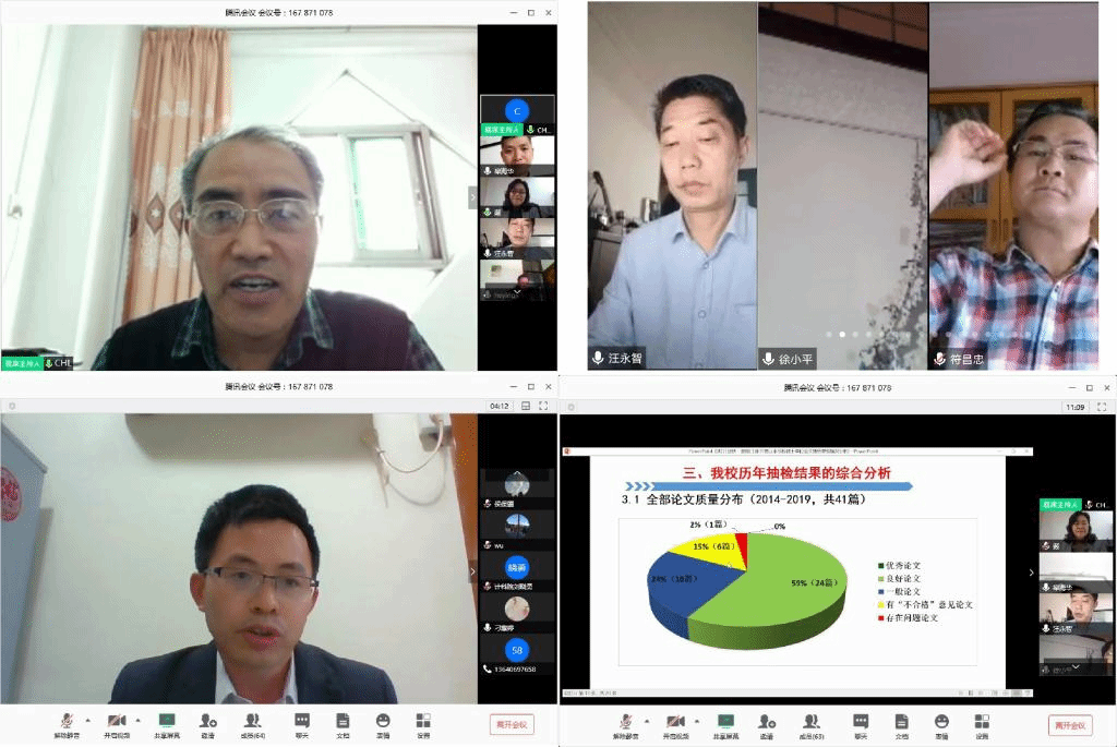 研究生处陈泳竹副处长通过PPT形式展示,就广东技术师范大学学位论文抽检情况及我校历年硕士学位论文抽检结果进行了分析,并就做好我校2020届学位论文工作提出建议:落实导师第一责任人要求和立德树人职责;是要严格论文答辩复制比检测、论文评阅和论文答辩三个关键环节,做好监督服务,落实论文评价的学术责任和权利。