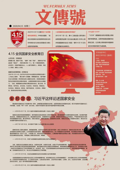 各学院围绕国家安全主题,结合学校疫情防控实际,开展了一系列国家安全专题教育活动,同学们通过参与电子报制作,进一步了解国家安全知识,以图片结合文字的形式,直观地展现同学们对于国家安全法的认识,树立了总体国家安全观,深刻认识到国家安全,人人有责。其中文学与传媒学院举办的“国家安全心中印 疫情抗击足下行”主题电子报设计大赛,通过电子海报设计,提高国家安全宣传的影响力和渗透力,推动国家安全法的宣传普及不断深入,使维护国家安全人人有责的观念深入人心。