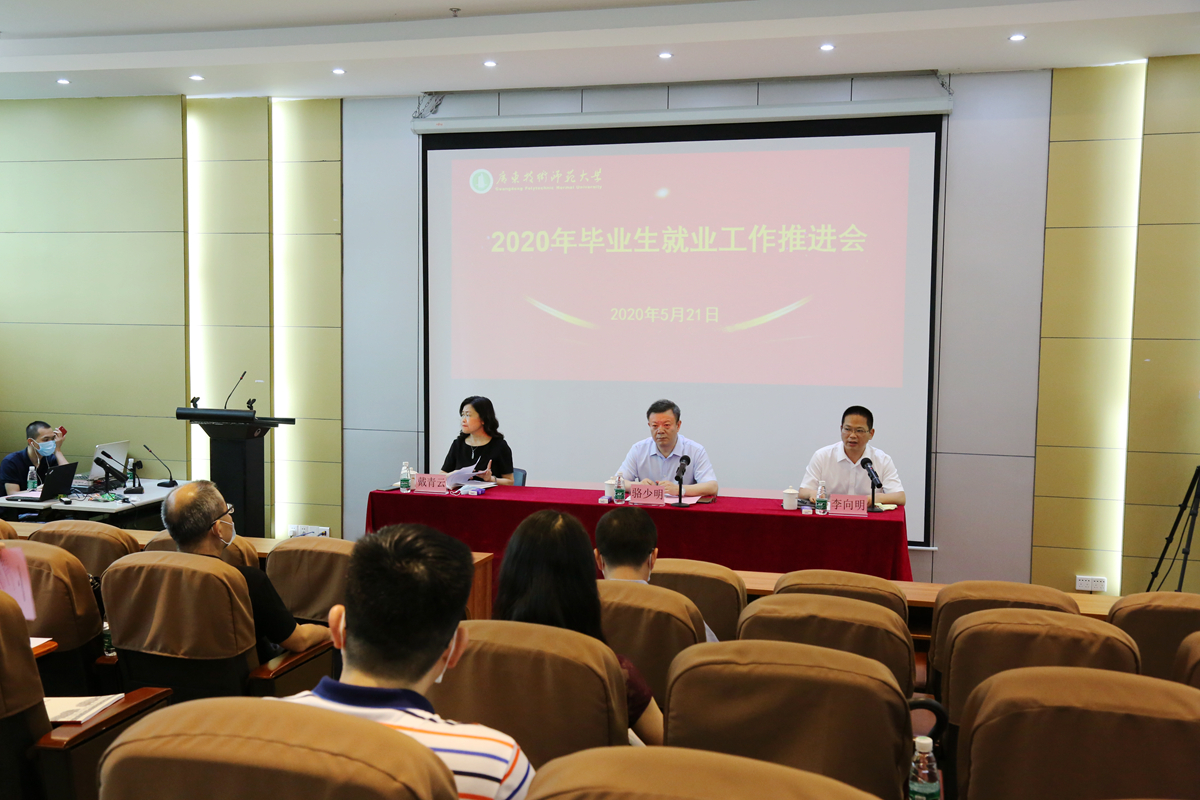 会上,骆少明充分肯定了我校疫情期间就业工作所取得的积极进展,对下一阶段毕业生就业工作提出三点意见。一要进一步提高站位,深刻认识毕业生就业工作的重要意义。要把就业工作放到事关社会稳定大局的高度来对待,把就业工作提升到事关学校生存发展的高度来看待。二要进一步认清形势,全力以赴落实毕业生就业工作的目标任务。骆少明分析了当前就业工作面临的挑战与困难,要求全校上下要全力以赴落实毕业生就业工作,做到:明确责任、压实责任;勇于作为、善于作为;不忘初心、敢于担当。三要进一步强化激励保障,实施九大举措促进就业:加强毕业生思想政治教育和心理疏导;加大奖励力度,鼓励毕业生到基层就业及参军入伍;鼓励校友企业招聘毕业生,授予招聘毕业生较多的校友企业“广东技术师范大学优秀校友企业”称号,授予推荐较多毕业生成功就业的校友“广东技术师范大学优秀校友”称号等;鼓励广大教职工推荐毕业生就业;设立创业奖励金100万,实施毕业生创业支持计划,鼓励毕业生以创业带动就业;进一步推进“暖春计划”,加大困难毕业生就业帮扶力度;鼓励毕业生考硕考博升学深造;持续开展就业服务行动;加强就业工作的检查和指导。他要求,各单位、各学院要尽快召开就业工作专题会议,进行专题研究部署,全面落实学校党委关于促进就业工作要求,抓紧抓实抓细就业工作,全方位助力毕业生充分就业、高质量就业。