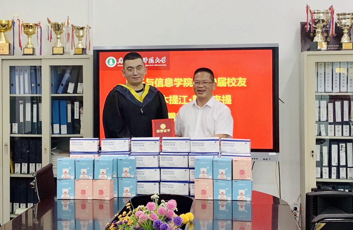 麦合木提江▪阿卜来提表示,母校承载着他的青春和梦想,也见证着他的成长,在毕业离校之际,作为正在创业的少数民族学生捐赠口罩送给抗疫一线的老师和返校的同学们。“非常开心能助力学校的疫情防控工作,感谢党和广师大对我的培养教育,自己一朝是广师大学子,终生要服务广师大的发展!”