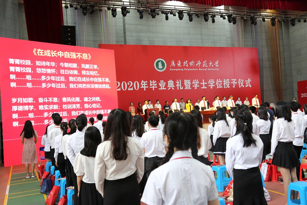 扬帆起航正青春,追梦奋进新时代。6月23日上午,广东技术师范大学2020年毕业典礼暨学士学位授予仪式在白云校区学生活动中心举行。因为疫情原因,今年采用线上与线下结合的特别方式同步举行2020届毕业典礼,249名毕业生代表现场出席,无法到现场参加毕业典礼的毕业生、家长、校友、社会各界人士总计28.4万多人通过直播平台与毕业典礼云相约。典礼同样仪式感满满,带给大家别样的温馨和感动。