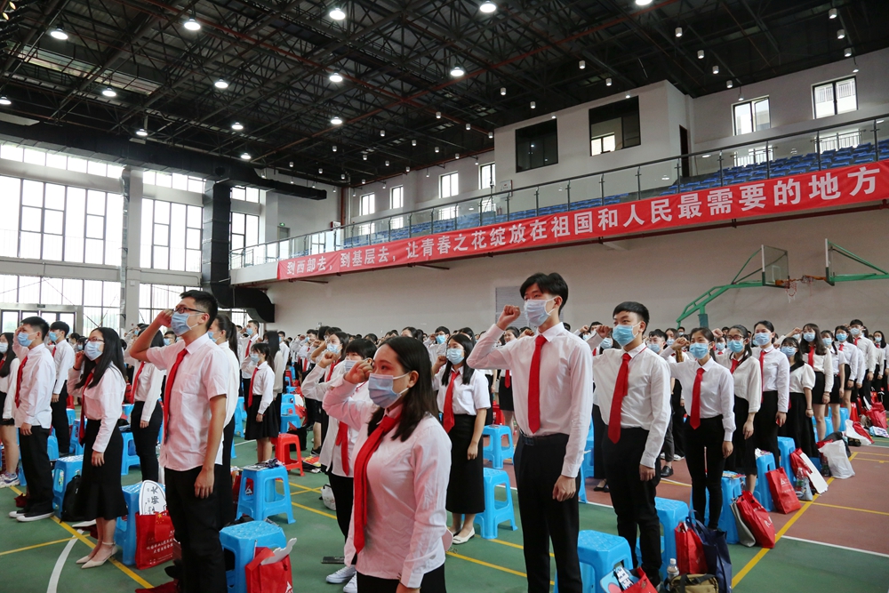 教师代表教育科学与技术学院院长陶红教授、毕业生代表音乐学院2016级舞蹈学(师范)专业李倩倩同学分别发言;全体2020届本专科毕业生进行了宣誓。