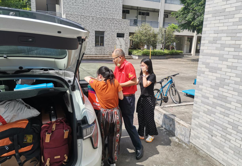 毕业生返校期间,全院教职工全员行动,提供论文上交、证书领取、党团关系转接、毕业生登记表签名、贷款毕业生毕业确认等“一站式服务”,让学生少跑路;在学生宿舍区设立放行条现场办理点,让毕业生少受日晒雨淋;教工党支部结合毕业生返校工作,开展“不忘初心跟党走,牢记使命争先锋”主题党日活动,组建教师突击队,建立党员志愿岗,成立爱心服务车队。学院全体教职工把责任扛在肩上,把关心付诸行动,早早等在白云校区服务岗,化身“最美搬运工”。有车的老师帮助学生运送行李到学校出口或学校附近的家里;没车的老师或用拖车拉行李,或在现场协助办理离校放行条手续,或参与返校离校的其他工作。实验中心温宗礼老师上午9点就一直帮助毕业生运送行李,直到中午1点多草草吃上几口饭又赶到宿舍楼下运送行李;教工支部书记唐德翠、班勃、李玉娜、陈贞丰、操瑞兵克服自身困难,带头在一线工作;测控教工党支部和党政办与实验中心党支部在每批学生返校离校均主动作为、全员出动,电气教工党支部从身体抱恙的老师到海归博士,自动化教工党支部从年长的教授到家有两名幼儿的女教师,建电教工党支部从不同地区奔赴而来;辅导员、实验中心老师、教务员、班主任和系部主任始终坚守在一线;为确保返校服务工作点不缺位、不空岗,全体辅导员每晚都工作到深夜,第二天又精神饱满早早到达工作岗位,用行动、用态度、用温度向毕业生诠释了温暖的教育守护。六天中,全院教职工共出动66辆车,帮助学院和兄弟学院的毕业生运送行李超过500车,让学生感受到老师们火一般的热情,“自动化学院老师真是太棒了!”“今日老师们送我前行,他日我必报深情师恩”。