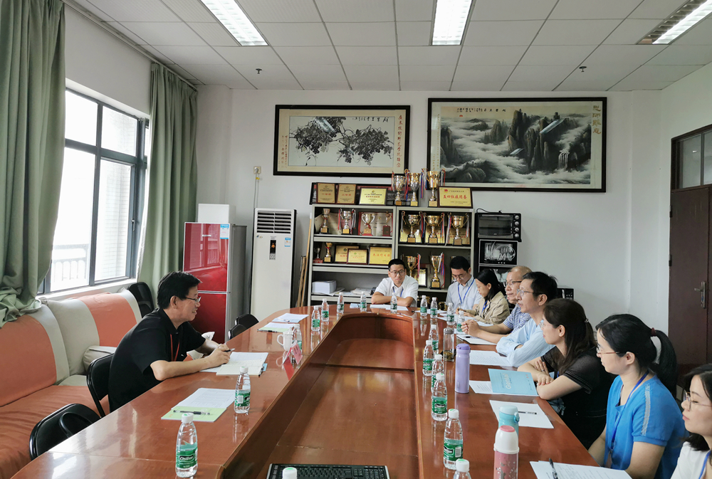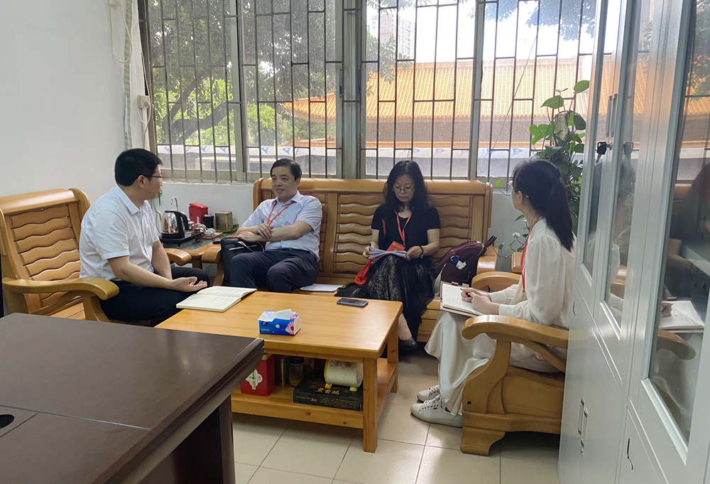 图为认证专家组成员潘镇教授、项目组管理员周晓静副教授与我校教务处处长向凯进行访谈