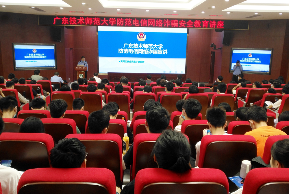 为进一步加强校园防范电信网络诈骗工作,切实保护好师生的切身利益,强化师生的安全意识,确保师生财产安全,10月28日,由学校保卫处、团委组织的校园防范电信网络诈骗安全教育讲座在东校区学术报告厅举行,棠下派出所魏德华副所长、冯景佩警官等反诈专家为东校区师生作反诈讲座,保卫处全体干部以及东校区学生200余人参加。