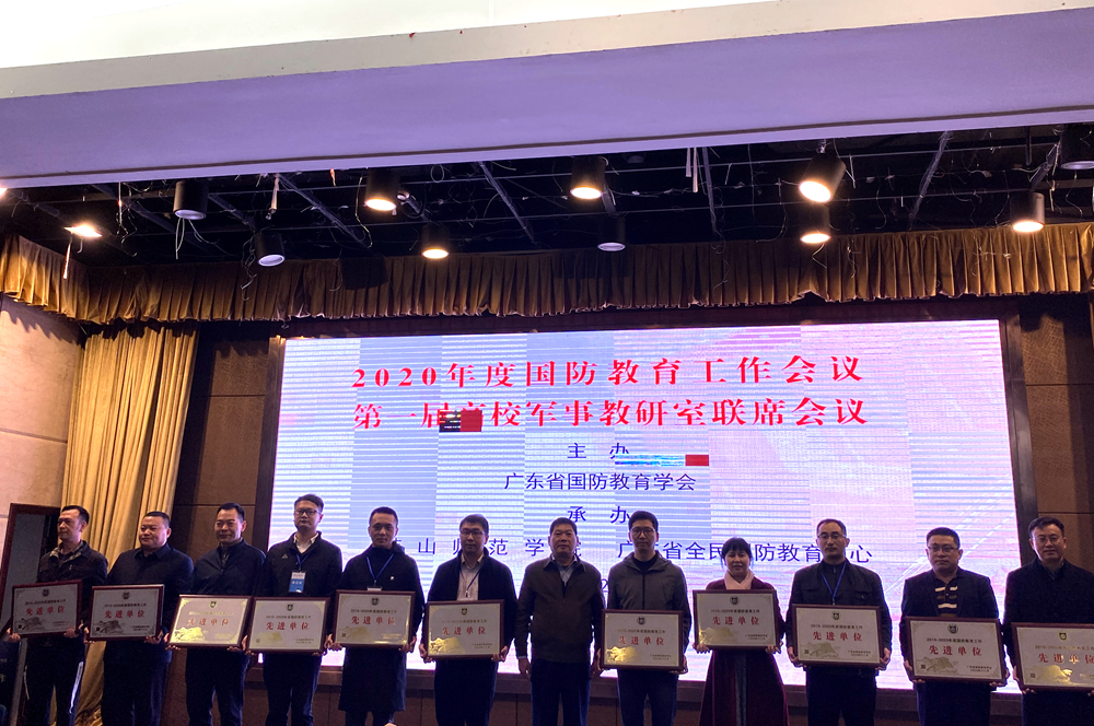 会上,我校被授予“广东省国防教育工作先进单位”荣誉称号,国旗护卫队获得“优秀高校国旗护卫队”荣誉称号;学校党委副书记李向明当选高校军事教研室联席会议主席团成员、高校国旗护卫队联盟第二届主席团本科组名誉主席、第二届理事会监事会成员;学生工作部(处)长、武装部部长郭磊当选高校国旗护卫队联盟第二届主席团本科组副主席;钟健雄、吴涛、罗雄等同志获“广东省国防教育工作先进个人”荣誉称号。