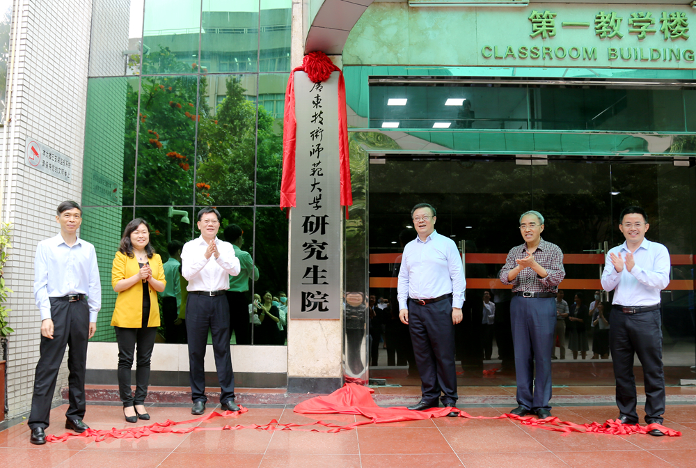 揭牌仪式上,在与会人员的共同见证下,学校党委书记凌靖波、校长骆少明、副校长戴青云及研究生院党政负责人共同为研究生院揭牌。