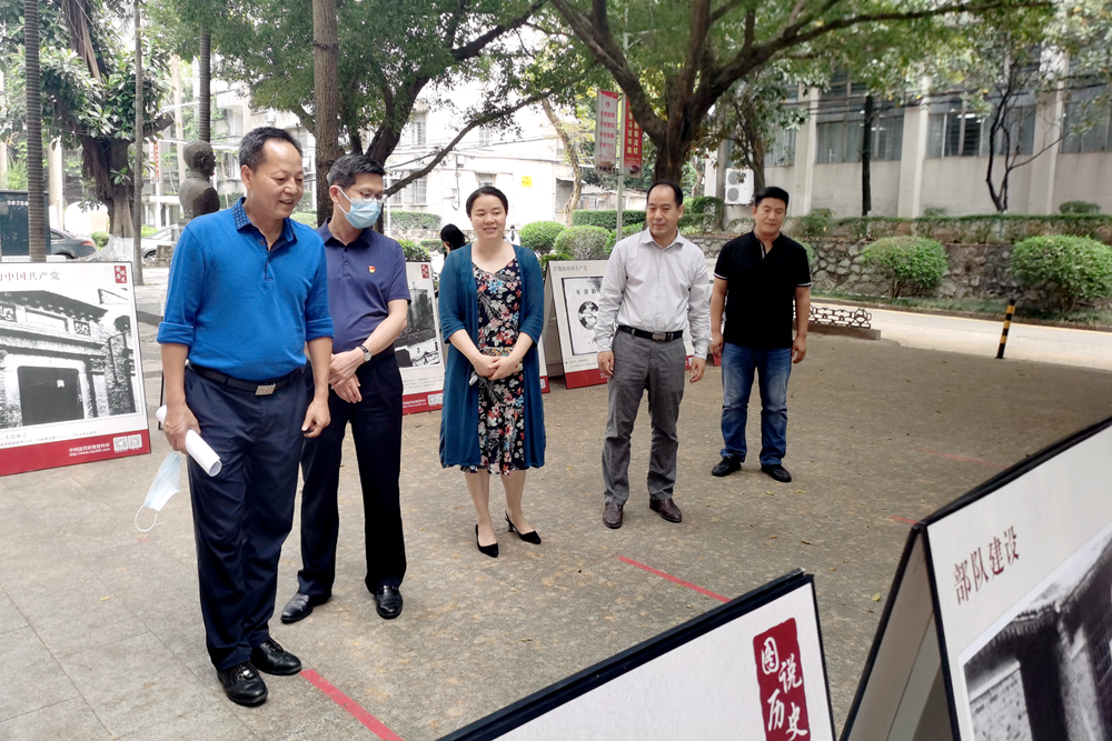 为庆祝中国共产党建党100周年,深入开展党史学习教育,图书馆于4月6日起在东校区图书馆门前广场举办“回顾党史瞬间,致敬百年岁月”主题图片展览活动。开展当天,学校党委书记凌靖波,党委副书记李向明,副校长黄秋文、苏晖,部分职能部门负责人和师生代表到场观展。